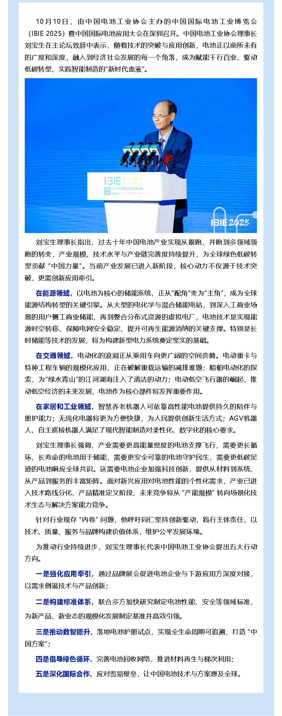 IBIE2025 | 中国电池工业协会理事长刘宝生:电池成 “新时代血液”,深度赋能千行百业